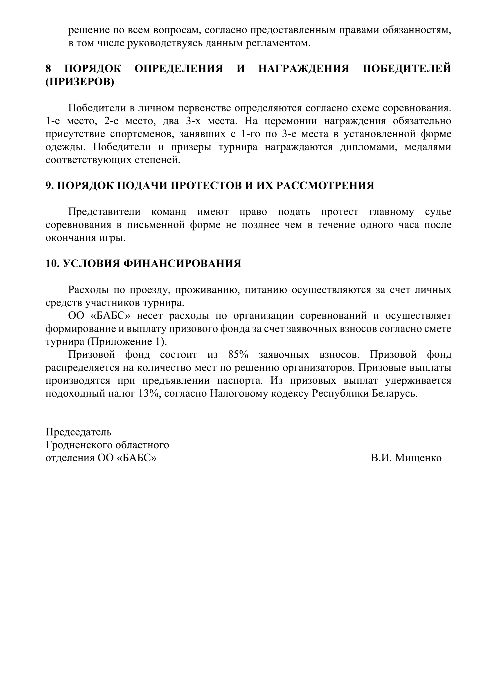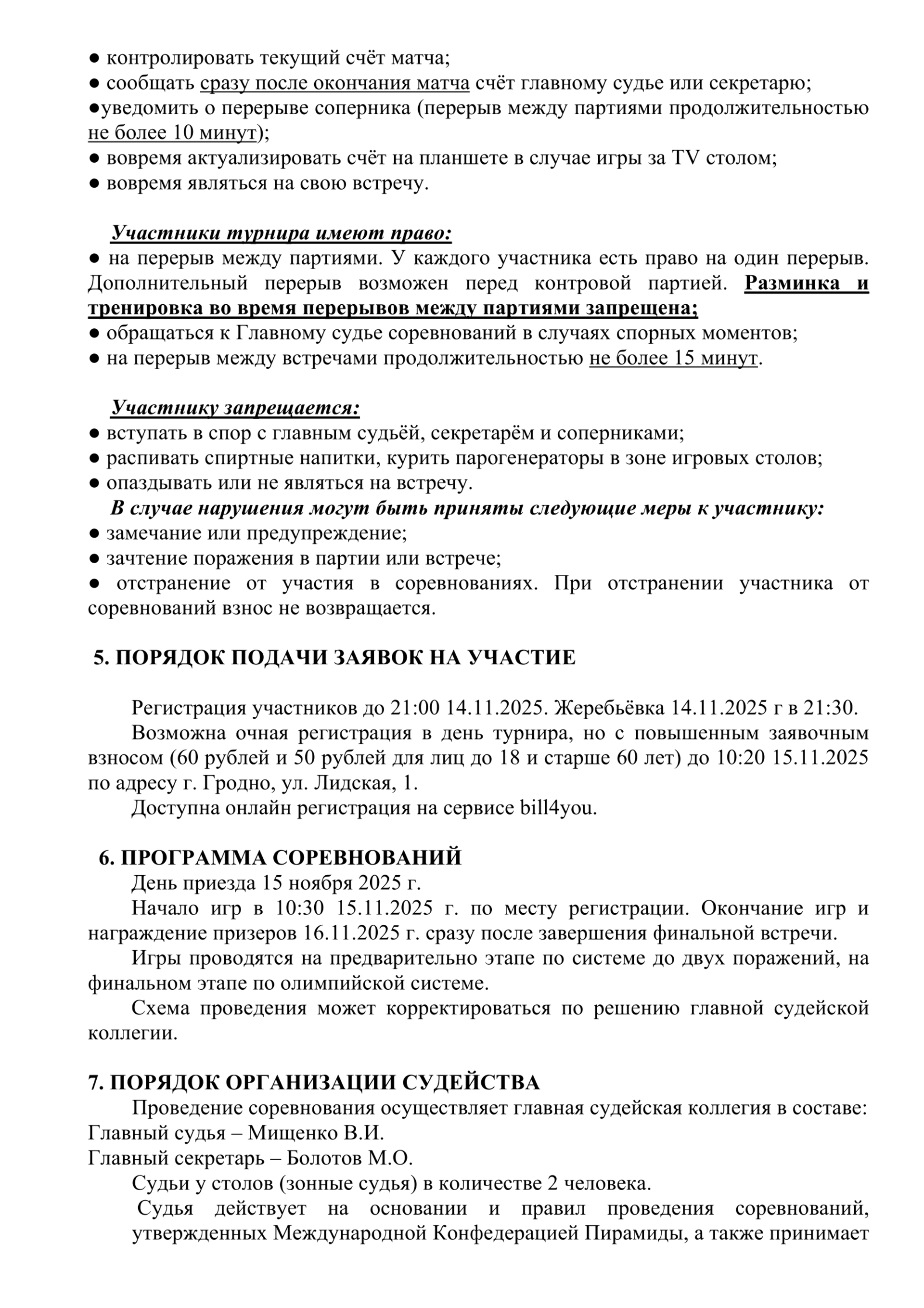 Правила турнира